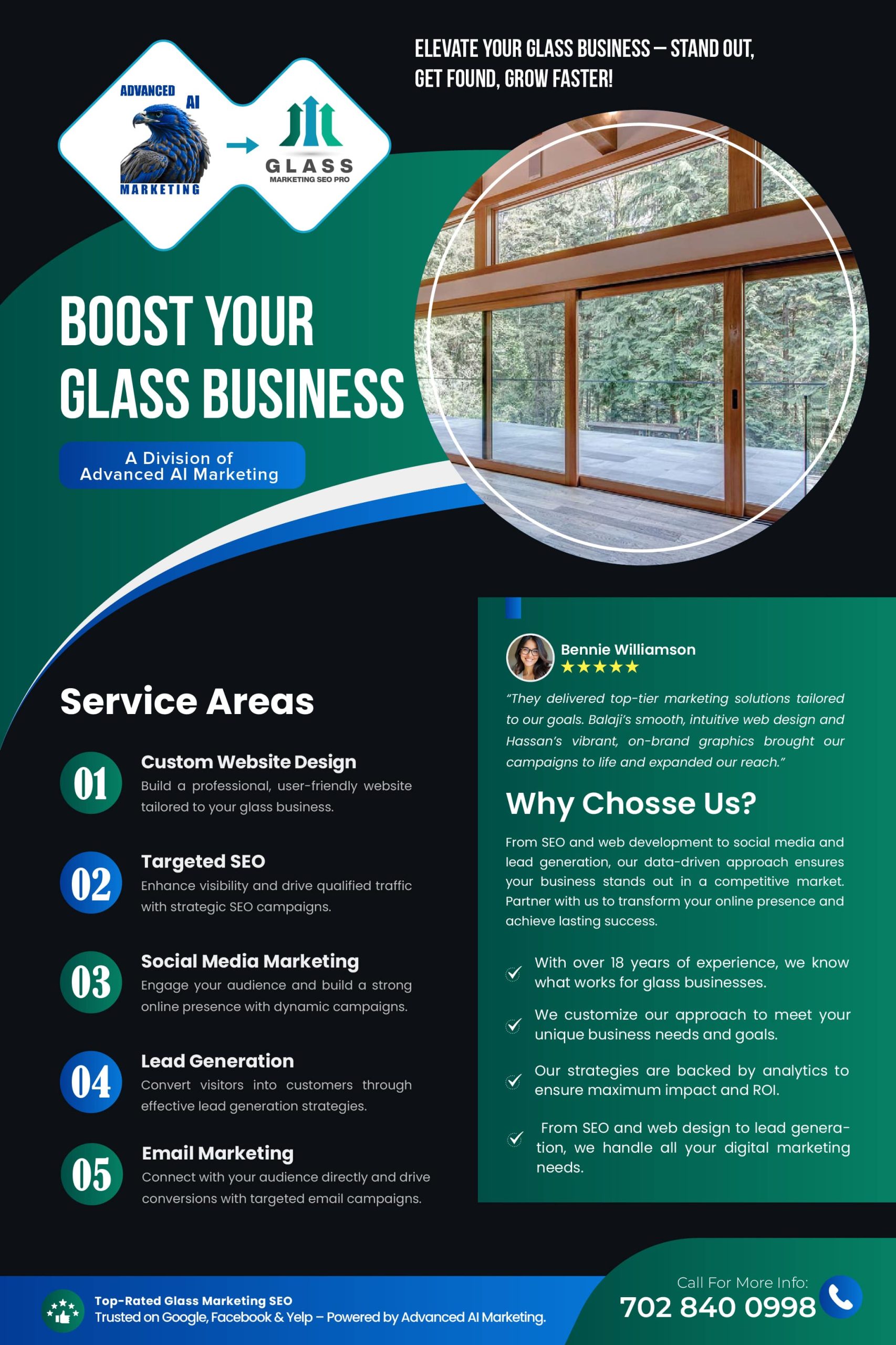 Unlock the full potential of your online presence with our expert services, tailored specifically for the glass industry.